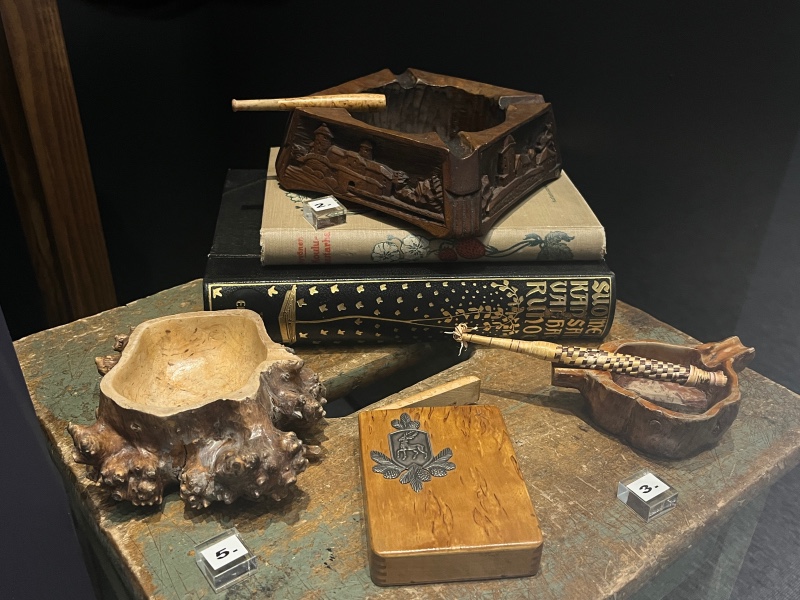 Sotilaiden tekemiä puhdetöitä Sodan muuttamia -näyttelyssä. Kuva: Anna-Riikka Timonen